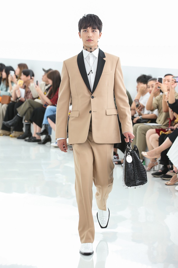 T臺上的許魏洲身穿由品牌設計師Silvia Venturini Fendi女士為上海大秀創作的15款專屬造型之一,一襲筆挺的駝色西裝套裝,內搭白色襯衫,手提黑色鱷魚皮紋包,整體造型優雅紳士,利落裁剪和精致工藝展現不凡品格。初登T臺的許魏洲臺步沉穩,氣場全開,自信滿滿,讓觀眾對他的模特首秀驚艷不已。相比T臺上的典雅穩重,秀后參加派對的許魏洲,穿上品牌2019年秋冬新款涂鴉風襯衣,休閑雅痞,以傳奇設計師karl Lagerfeld生前的手稿等元素為靈感的襯衫圖案,配上卡其色長褲,隨性之中透露著藝術氣息。臺上臺下兩種風格,盡顯許魏洲不凡的時尚品味和駕馭潮流的能力。(李昉)