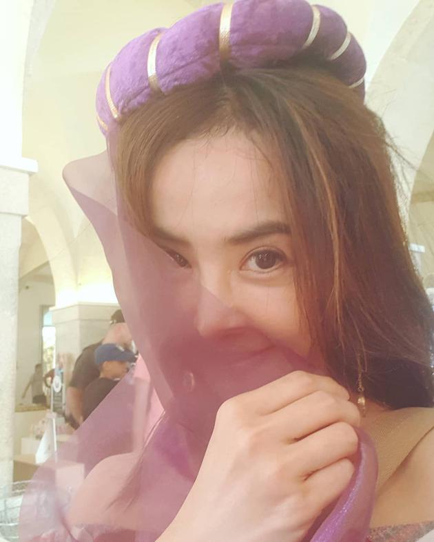 近日,蔡依林在個人社交網站上曬出一張美照。照片中,蔡依林頭戴紫色帽子,用紫紗掩面,含羞偷笑,模樣十分可愛。有網友評論道:“這是哪位公主?”“茉莉公主!”