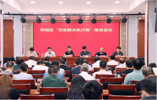 中國網鄭州7月10電 為鞏固“基本解決執行難”成效,推動執行工作向“切實解決執行難”邁進,7月9日,河南省南陽市宛城區召開“切實解決執行難”推進會議。宛城區委常委、政法委書記方傳軍、宛城區法院黨組書記、院長樊立兵出席會議,宛城區副區長高貴洲主持會議。