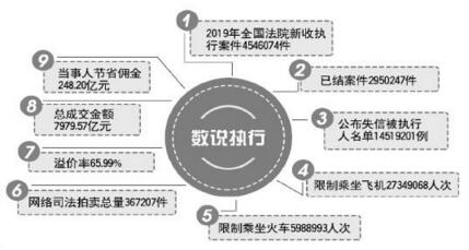 實現基本解決執行難階段性目標后,全國法院繼續保持執行工作高水平運行,建立完善長效機制,著眼更高層次上推動執行工作長遠發展,努力實現黨的十八屆四中全會提出的切實解決執行難目標。記者日前從最高人民法院執行局了解到,截至2019年7月9日,全國法院公布失信被執行人名單14519201例,限制乘坐飛機27349068人次,限制乘坐火車5988993人次。