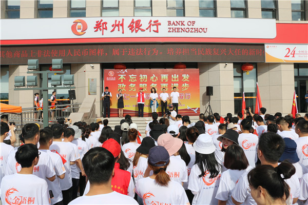 為慶祝中國共產黨成立98周年,6月29日,鄭州市政務服務中心與鄭州銀行中原路支行聯合舉辦“不忘初心再出發,政務服務再進步”主題健步走活動,鄭州市政務服務中心工作人員及鄭州銀行員工共計300余人參加活動。鄭州市政務服務辦公室黨組書記王新及鄭州銀行行長助理、中原路支行行長李紅出席活動。