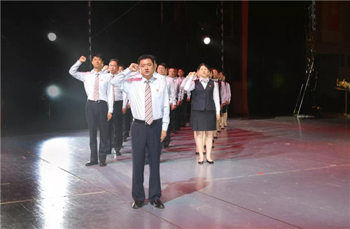 表彰會上,洛陽分行鄭曉輝等代表全行新發展黨員進行了入黨宣誓。省行惠桂欣副行長為鄭曉輝同志佩戴黨徽并贈送黨章。省行公司金融部黨支部書記馬骙帶領現場黨員重溫入黨誓詞,在鮮艷的黨旗下,全體黨員舉起右手、緊握拳頭,重溫入黨時的莊嚴承諾。