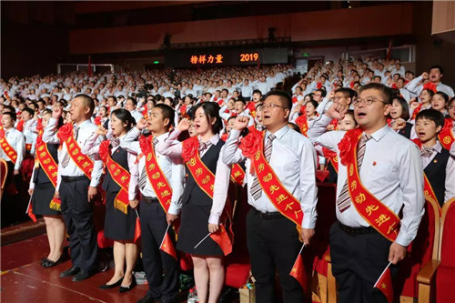 6月23日,河南省分行隆重召開“榜樣力量·2019”先進表彰大會,表彰優秀共產黨員、優秀黨務工作者、先進基層黨組織、優秀紅旗團組織、合規衛士等先進典型。河南省分行班子成員及301名先進集體和個人代表、700多名黨員干部代表歡聚一堂,傳承發揚榜樣精神,共唱新時代贊歌。河南省委宣傳部、地市相關領導應邀出席。