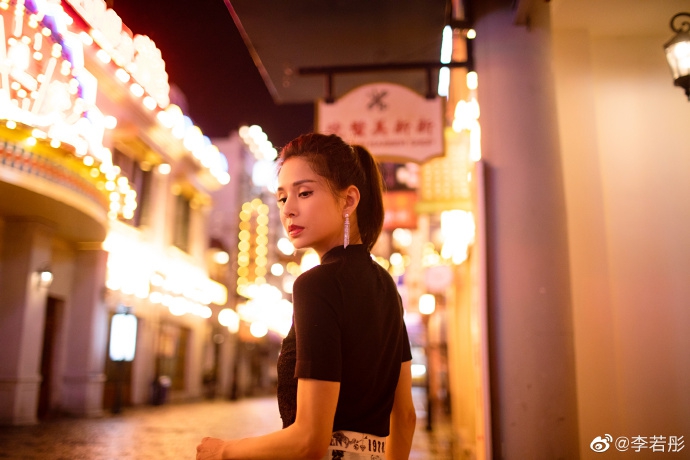 7月17日,李若彤更新動態,曬出美照,并配文稱:“夜晚的橫店影視城香港街,別有一番風味!”照片中,李若彤身穿黑色緊身T搭白色刺繡裙,顯出纖細腰身,背靠街景擺pose,美麗動人,高俏的馬尾,更是顯得活力十足。