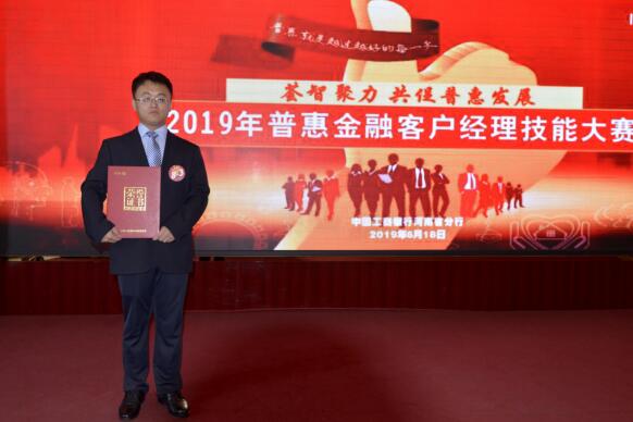在工行河南省分行普惠金融客戶經理技能大賽上獲得全場一等獎