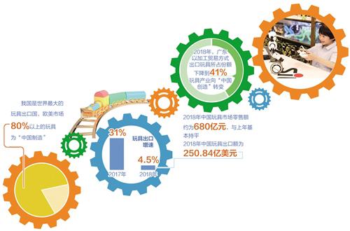 我國是世界最大的玩具出口國,歐美市場80%以上的玩具均為“中國制造”。不過,數據顯示,2018年我國玩具出口增長率回落較大,2017年玩具出口同比增長31%,2018年增速降至4.5%,出口額為250.84億美元。玩具產業發展為何會出現這樣的“磕磕絆絆”?