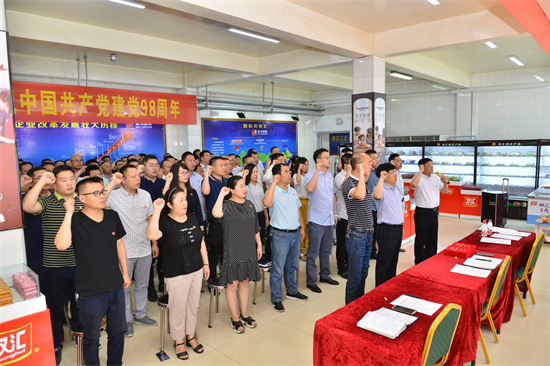 7月1日,為慶祝中國共產黨建黨98周年,雙匯集團黨委組織基層黨支部書記和優秀黨員代表進行“不忘初心、牢記使命”主題教育活動,活動現場還舉行了預備黨員宣誓儀式。