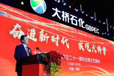 2019年5月18日,張貴林在大橋石化成立21周年慶典晚會上致辭