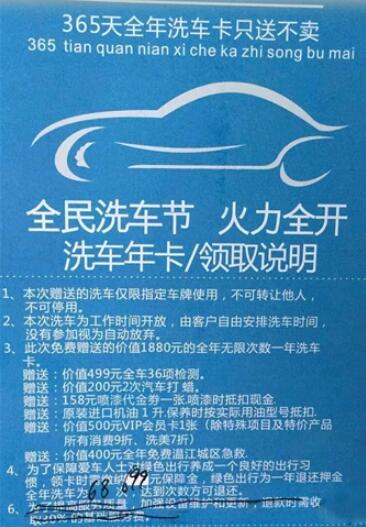 張女士介紹說,去年10月,益路行搞洗車促銷服務,辦年卡699元,一年內免費洗車,洗夠68次還退全款,相當于一分錢不花,免費洗一年車。不過,在車行易名之前,她只洗了六次。