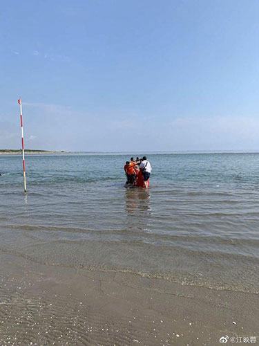 從曝光的照片看出,江映蓉整個身體已經沉入海水里,僅露出腦袋在水面,看上去非常的危險,好在工作人員及時趕到,將她拉了出來,看著就讓人膽戰心驚,替她捏了一把汗。