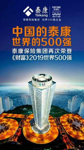 7月22日,《財富》正式發布2019年世界500強排行榜,繼去年首次上榜后,泰康保險集團再次入圍,以249.32億美元的營業收入位列榜單第498位。