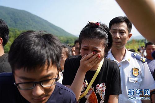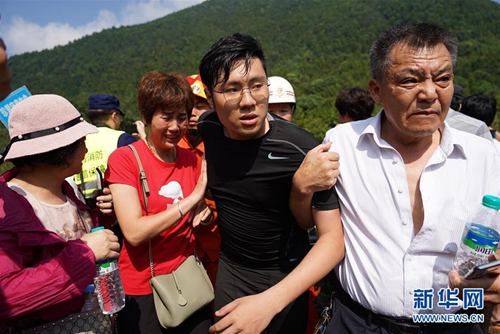 7月22日,一名“驢友”的親屬看到家人后激動落淚。新華社記者 周密攝