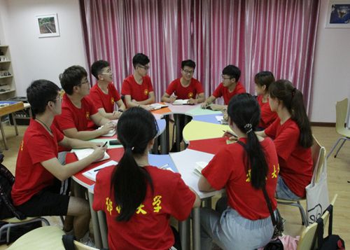 圖為隊員們一起討論課程、調研等活動內容通訊員李培攝