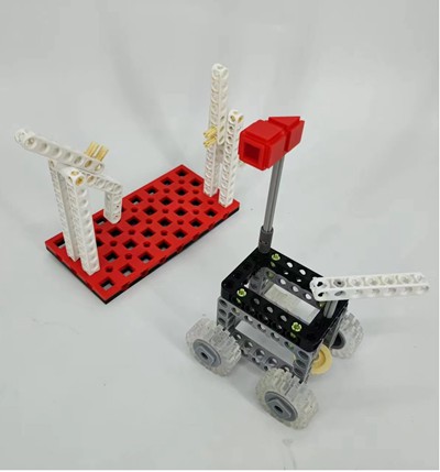 5.4.2 機器人通過操作桿將模型解鎖得20分,如圖5-1,轉動轉柄將資源從模型脫落至資源收集框得30分,如圖5-3。共計50分