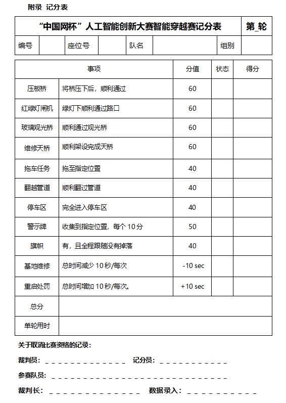 5.11.2如遇到無法完成的障礙物的情況下,可以選擇離線繞行通過,該任務視為放棄不得分,本輪比賽不得再次嘗試。