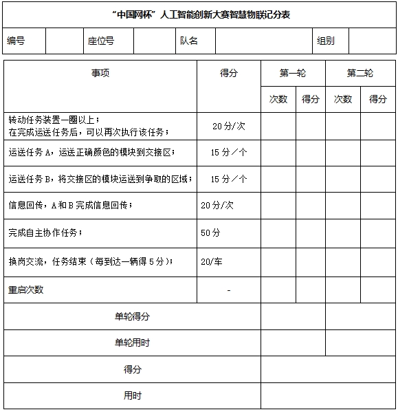 9.2比賽成績排序:取兩輪分數總和排名。如果分數相同,則比賽完成時間短的靠前。分數和時間都相同者,則運送木塊任務較多者靠前。