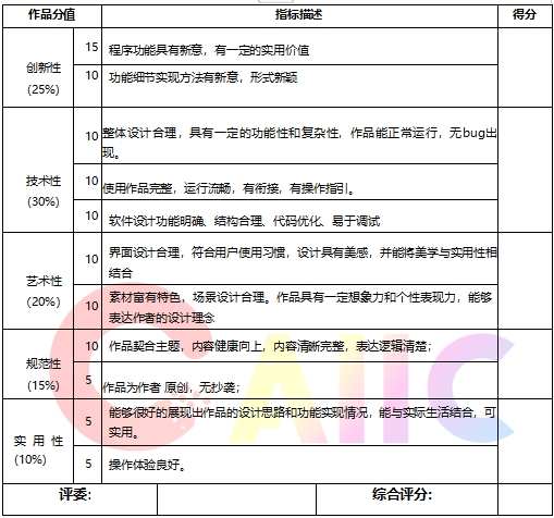 最后由專家評委綜合作品展示和答辯(100分)和現場創作(60分)兩個環節給出評分,綜合形成最終成績,確定獲獎等級。得分計算公式為:總分=預選作品和答辯+現場作品得分。