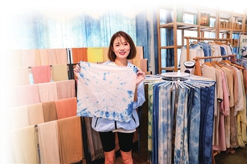 7月28日,游客在欒川縣伊和家染作坊體驗布藝印染。近年來,該縣文旅發展從“資源為王、觀賞游覽”向“創意為王、沉浸式體驗”轉變,時尚感、年輕態、文化味的旅游項目,成為文旅融合發展的新亮點。本報記者鄧放攝
