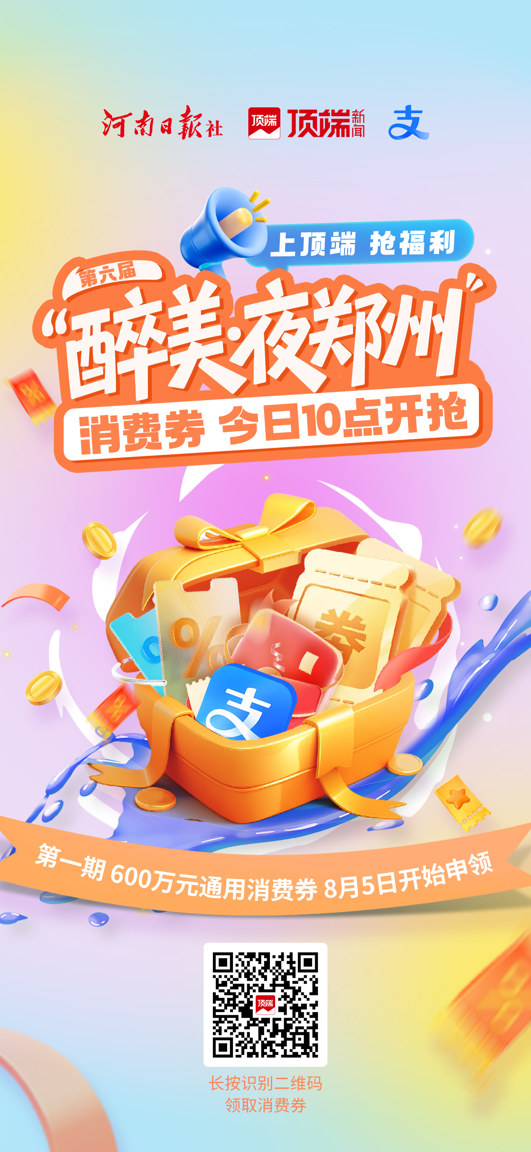 此外,頂端新聞app領取第六屆“醉美·夜鄭州”支付寶通用消費券渠道已開通。