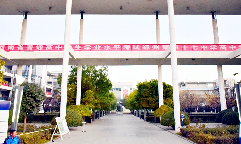 考試期間,鄭州47中考點布置規范統一、肅靜整潔,校園內懸掛誠信考試的橫幅,張貼警戒考生舞弊的標語;考點平面示意圖清晰醒目,設置警戒線與指示牌,工作人員引導考生有序進場;考務組、醫務室、飲水處、物品存放處標識明確,考場內,環境干凈整潔,座位號和座次表張貼規范。