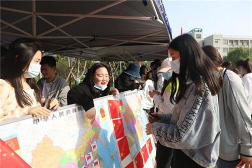 實踐活動圍繞中國共產黨百年發展歷史的重要節點設置故事線,在校園中設置12塊黨史知識展板和12個活動站點?;顒臃譃閮刹糠?,一是學習百年黨史答題活動,學生手持印有黨史知識題目的答題卡,從揚帆廣場第一站出發,每到達一個站點,先學習站點設置的黨史知識內容,然后進行答題,答對者可獲得一枚答題通關印章;二是感悟偉大歷程實踐活動,各個站點結合不同歷史時期組織開展內容豐富、形式多樣的學黨史實踐活動,學生按照活動項目要求完成任務后,可獲得一枚活動通關印章。最終,學子們根據獲得的通關印章數可以換取相應的禮品?;顒蝇F場彩條飄揚、人影穿梭、氣氛熱烈,學子們個個熱情高漲,在“青春心向黨祝福頌祖國”終點站紛紛在許愿處為黨的百年華誕、為偉大祖國送上美好祝愿。