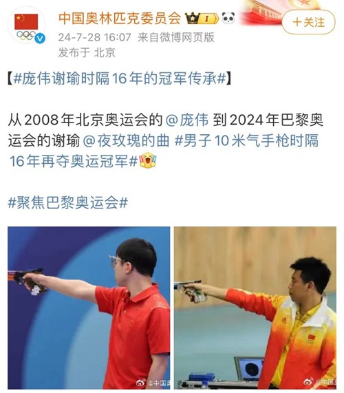 【恭喜夜玫瑰的曲奪金】北京時間7月28日結束的巴黎奧運會射擊男子10米氣手槍決賽中,24歲的中國選手謝瑜后來者居上,在資格賽僅排名第6位的情況下,決賽中一路逆襲,以240.9環的成績為中國隊拿到本屆奧運會的第三枚金牌。兩名意大利選手馬爾蒂尼和蒙納分獲銀銅牌。