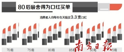 據天貓數據顯示,口紅仍是最暢銷的單品之一,消費者平均每年每人在天貓購買3.3支口紅。僅在2017年,購買過5支以上口紅的女生就超過300萬??诩t消費的旺盛讓不少品牌借口紅跨界,除了馬應龍口紅外,還有小楊生煎和稚優泉推出的小龍蝦色號唇釉,肯德基推出的草莓冰淇淋味口紅也早已出道。