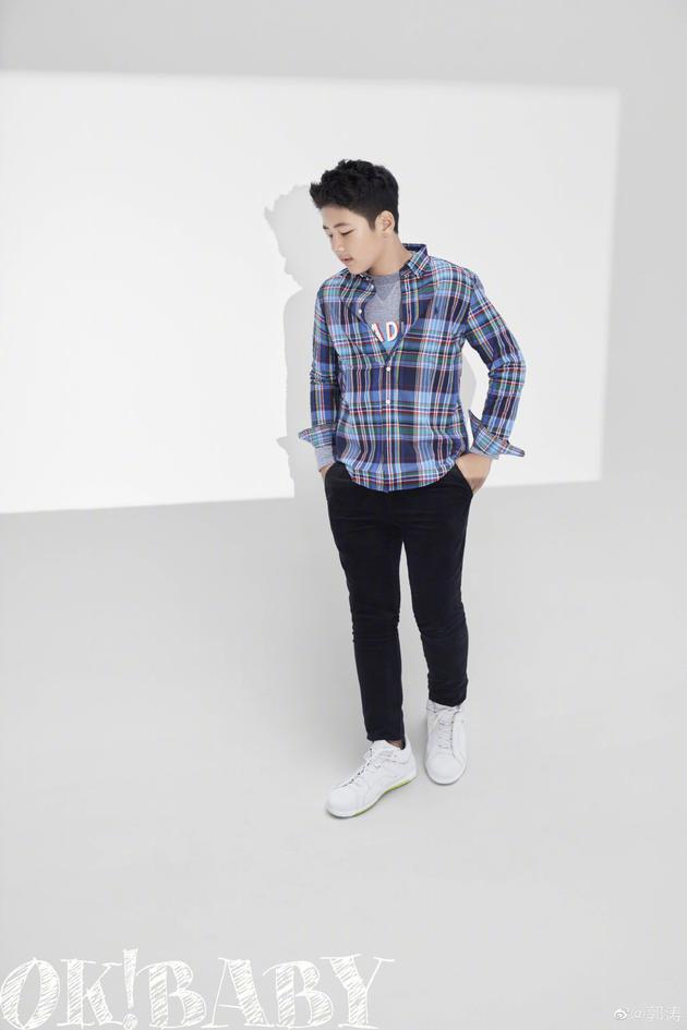 郭濤曬照感慨兒子成長 石頭長腿出鏡帥氣十足