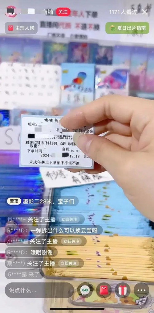 隨著卡牌生意的發展,越來越多的拆卡直播間應運而生。