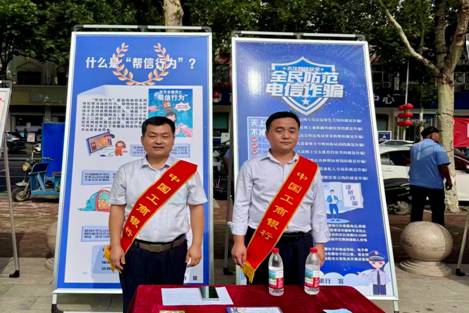 工行濮陽南樂支行走向街頭,面向群眾開展全面防范電信詐騙宣傳。