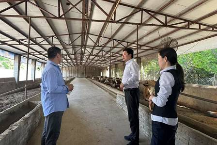 工行信陽羅山支行實地調研某肉牛養殖場經營情況,把普惠金融服務送到養殖戶身邊。