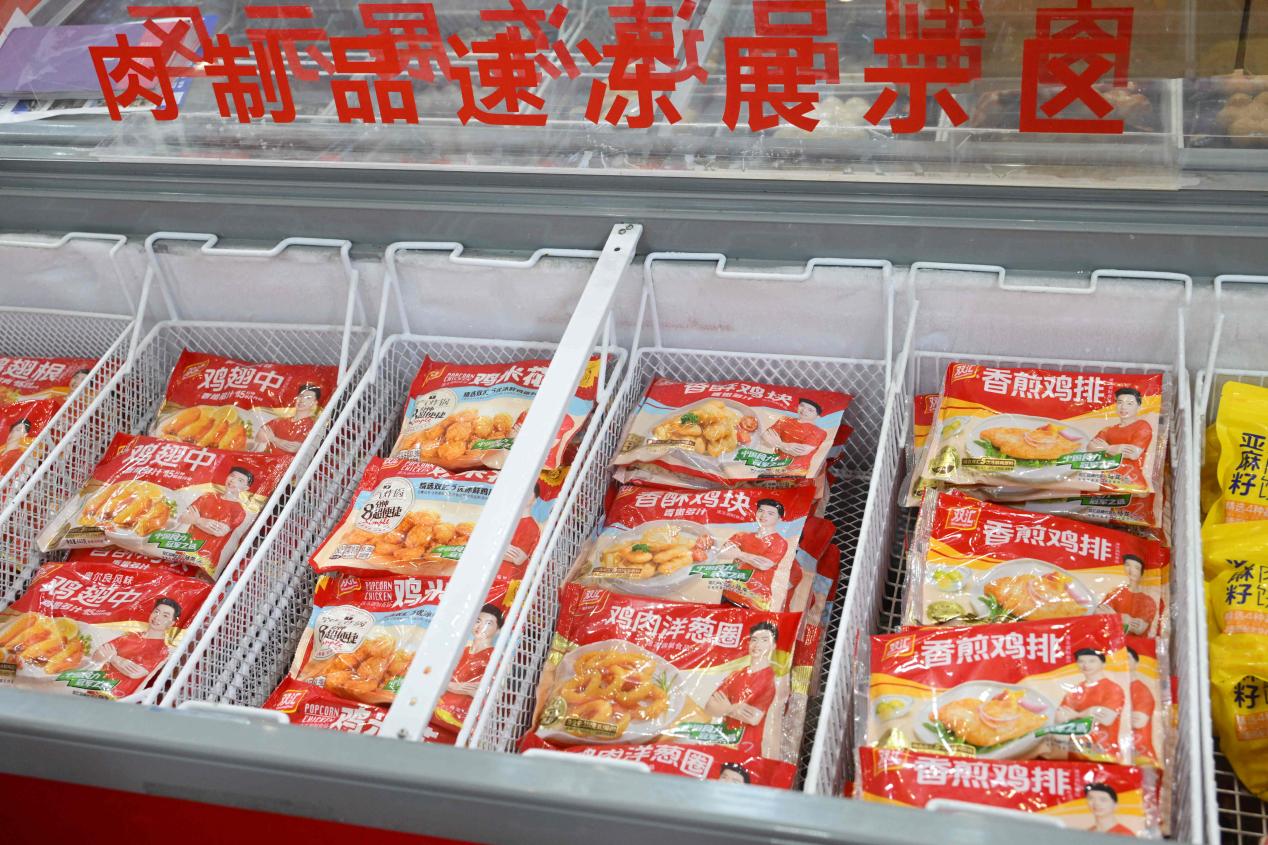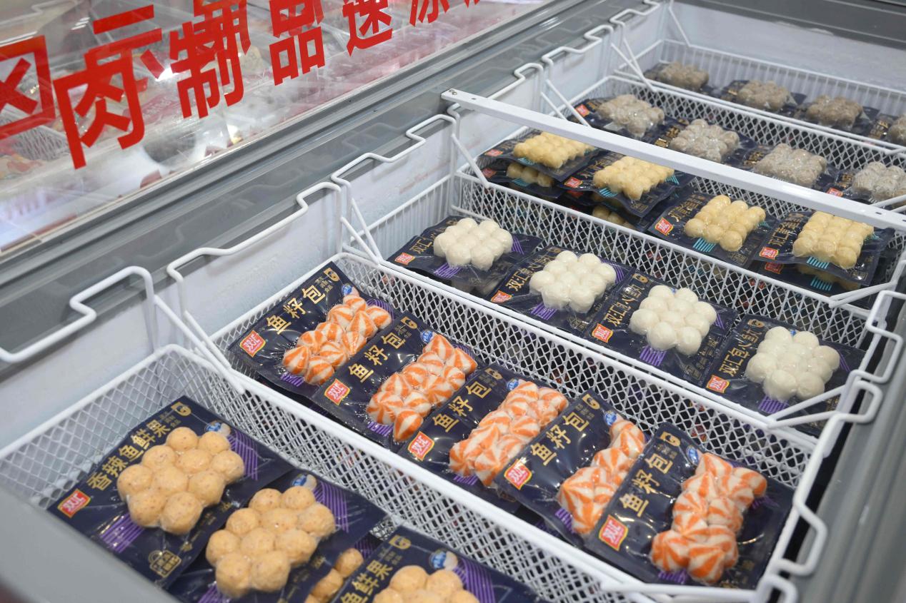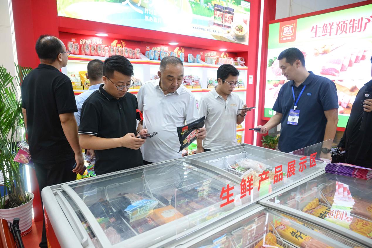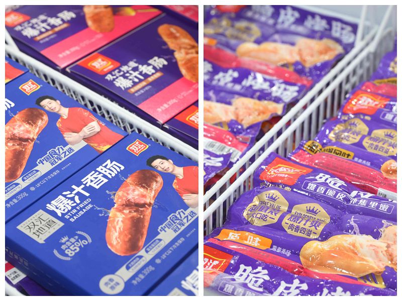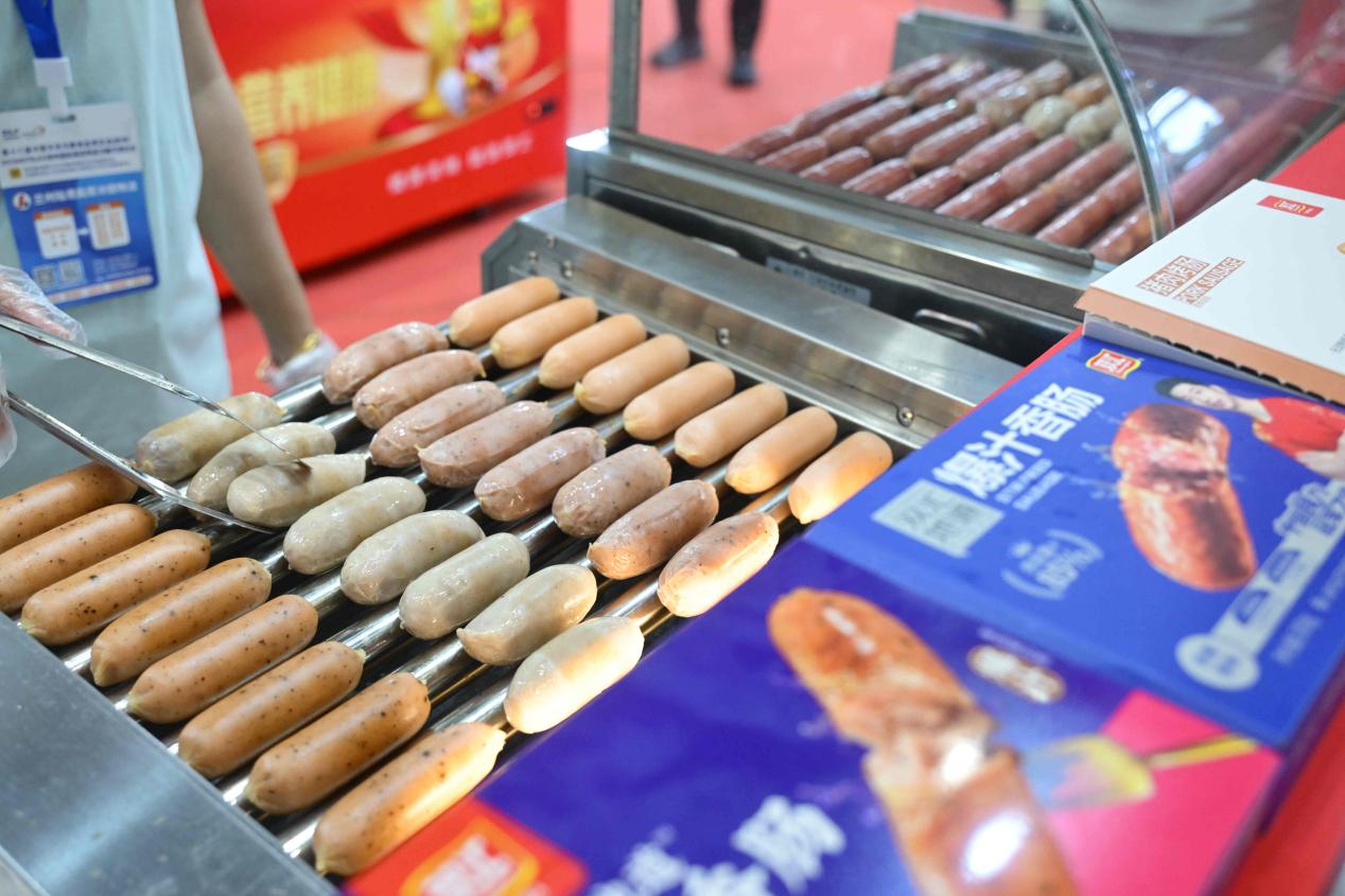 展柜內,Berlinka早餐肉蔬卷、極菲牛排、超值培根、炸豬排、亞麻籽雞肉餅、熱狗腸等特色產品,蒜香排骨、醬香肥腸、酸菜魚、豬肚雞等菜肴系列,香煎雞排、香酥雞塊、奧爾良風味雞翅中、雞肉洋蔥圈等調理雞產品,丸子、肉卷、小酥肉、親親腸、芝士脆皮腸等火鍋食材,也充分展現了雙匯在產品創新方面的全新探索。