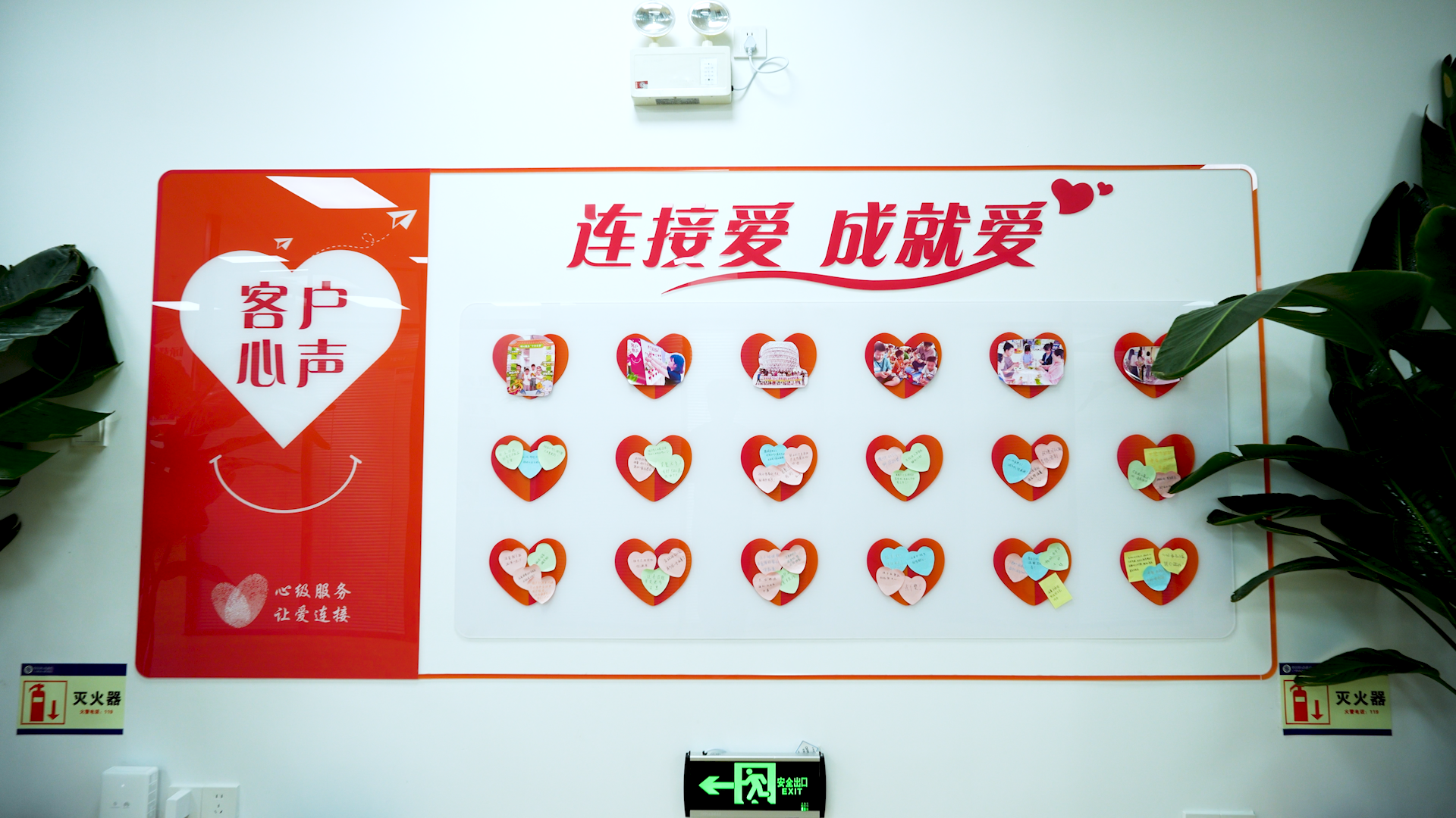 “心級服務之家越辦越好!”“謝謝多教老年人用手機”“小姐姐服務態度好辦事很周到”……“客戶心聲”墻上客戶的真實好評,才是最好的口碑。這面墻讓人感覺心里暖暖的……
