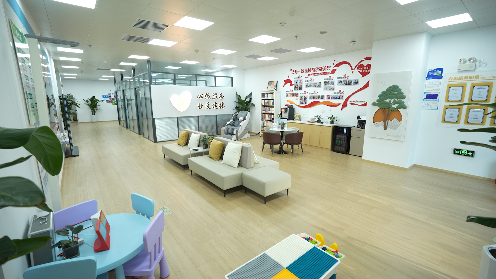 進入大廳,環境明亮溫馨,按摩椅、咖啡、茶點全安排,這哪是營業廳?分明是“減壓充電站”!