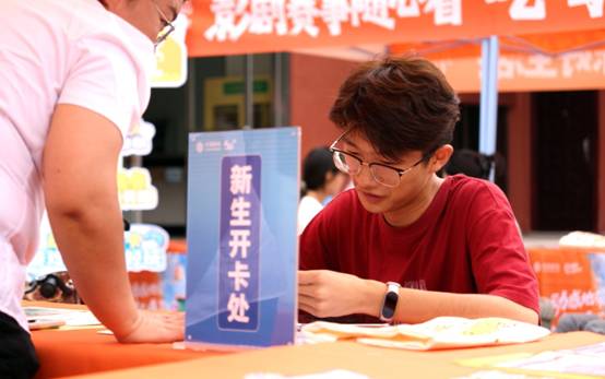 營業廳外,橙色帳篷整齊排列,迎新標識充滿活力,新生們紛紛來到網紅打卡角,定格入學美好瞬間。工作人員還貼心為新生們準備了帆布袋、簽字筆、文件袋等文創產品,為新生送上一份驚喜?!胺浅<?,能來到鄭州大學,中國移動的套餐比較優惠,工作人員的服務都很貼心?!贝笠恍律钔瑢W拿著新辦理的手機卡開心的說道。