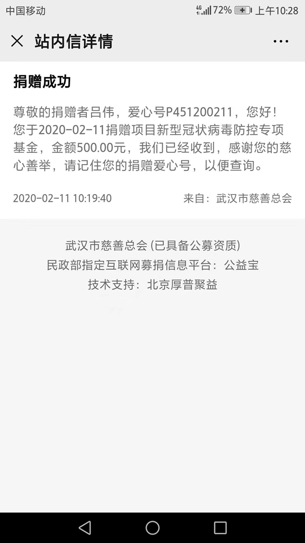 昨天還看到呂偉在問大家為武漢捐款的渠道,雖然孩子們的教育及其他開支以及父親的醫藥費讓這個家庭有些拮據,但是呂偉還是選擇了捐款并樸素的說了一句:國難當頭,盡自己的綿薄之力吧!