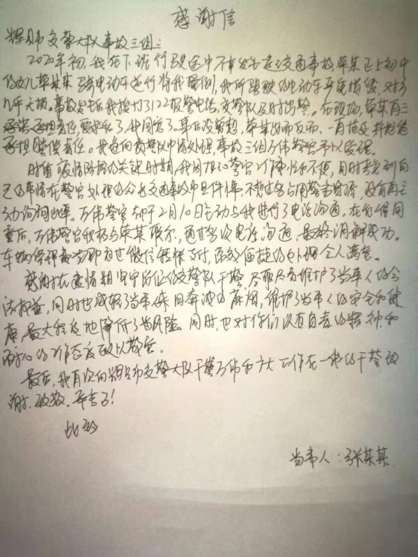 2020年2月11日,“平安輝縣”小編收到了一名交通事故當事人的微信消息,感謝公安局交警大隊事故三組萬偉同志,在疫情期間不放棄對自己電動車交通事故的調解。期間,萬偉前后打了32通電話,成功調解群眾糾紛、維護群眾權宜,贏得了群眾的認可。