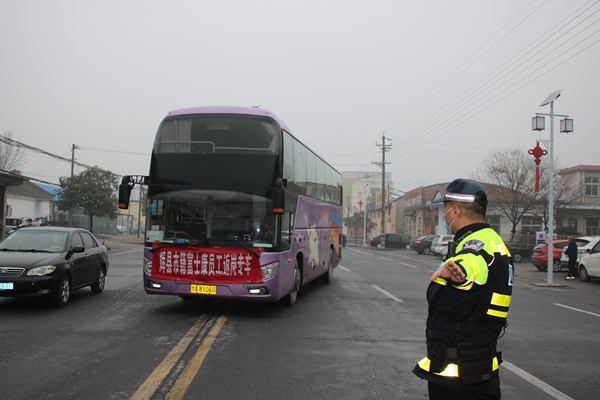 為認真落實國務院關于切實加強疫情科學防控有序做好企業復工復產工作的決策部署,在對“疫情”管控不放松的情況下,交警大隊負責人程愛民積極與人力資源保障負責人溝通,細化方案、制定護送路線,保障復工人員在疫情期間安全返崗,有序復工。