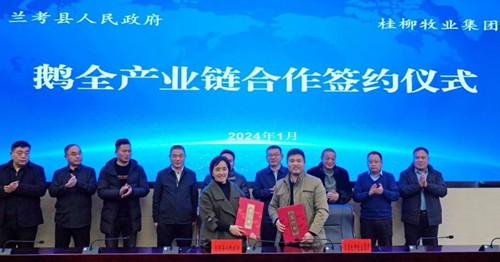 1月17日,河南省蘭考縣人民政府與廣西桂柳牧業集團鵝全產業鏈合作簽約儀式舉行。廣西桂柳牧業集團副總裁劉國發、桂柳種禽集團鵝業管理公司總經理姚德星,河南省蘭考縣委副書記、縣長丁向東、縣委常委、宣傳部部長、副縣長劉九玲參加簽約儀式。