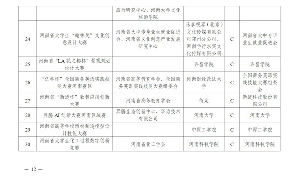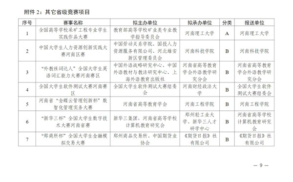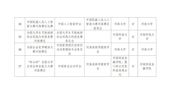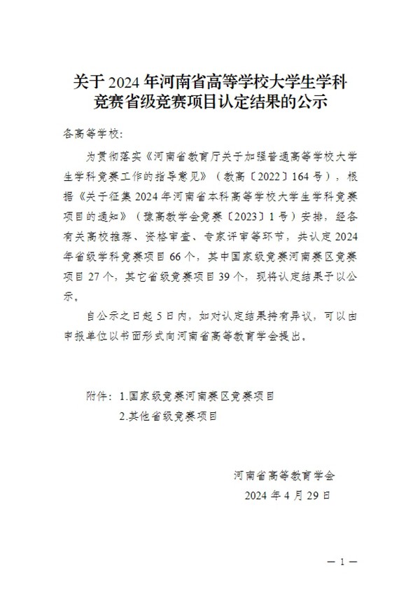 關于2024年河南省高等學校大學生學科競賽省級競賽項目認定結果的公示