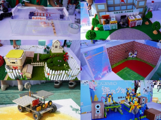 開封市城鄉一體化示范區教育體育局、河南大學附屬小學(金明校區)、開封市梁苑小學、開封市金明實驗小學、開封市金明池小學作為參展單位為本屆AI文化展帶來了十余種由學生們親手制作的科技作品。