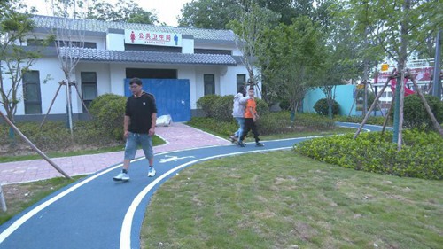在北小店社區農場路和蓼東路交叉口的唐園廣場內,五彩步道,亮麗奪目,兩側草木郁郁蔥蔥,園內景觀設計充分考慮到不同年齡段的運動需求。分別設立了休閑娛樂、景觀廊道、運動健身等休閑場所,可謂是一步一景。雖然廣場占地面積小,但每一處都小巧精致,設施齊全,吸引居民駐足留連,盡享家門口的愜意時光。