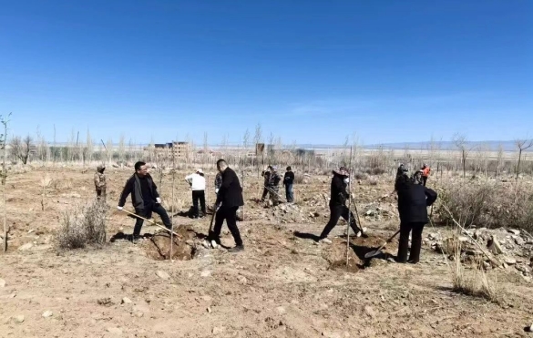 地處新疆東北部的巴里坤哈薩克自治縣,山地、戈壁占2.55萬平方公里,占全縣面積的66%?!叭f畝生態林”是該縣按照“生態立縣”縣域發展戰略實施的一項重大生態工程,每年的4月份是全縣全民義務植樹活動月。馬寒正好趕上。