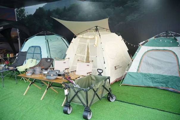 北廣場品牌消費區主打“活力消夏”,戶外裝備展位陳列著沖鋒衣、登山鞋等潮品,體育用品區的運動器材讓人躍躍欲試;消夏飲品區則匯聚本地特色品牌,夏日特調的酸梅湯、果茶沁人心脾,驅散暑氣。