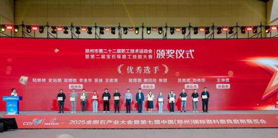 大會同期舉辦了鄭州市第二十二屆職工技術運動會暨第二屆寶石琢磨工技能大賽頒獎儀式。來自鄭州的選手李來峰憑借"極致專注與精湛技藝"獲得行業最高認可。