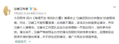 汪峰演唱會遲到80分鐘?工作室:拼盤商演 不存在遲到