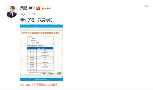 坤音四子靈超曬錄取通知書,成為上戲表演專業新生