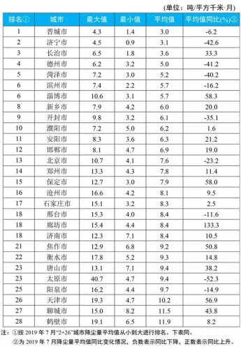 2019年7月京津冀大氣污染傳輸通道“2 26”城市降塵監測結果