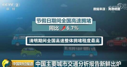 高速公路運行方面,本季節假日期間全國高速擁堵同比上升6.7%,清明期間全國高速整體擁堵程度最高,其次是五一,端午擁堵程度最低。