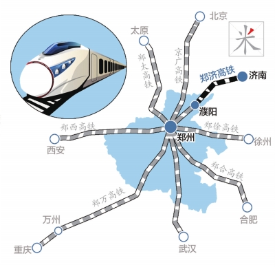 據了解,今年年底前,鄭濟鐵路濮陽至濟南段開工之際,河南“米”字形高速鐵路網主線——鄭州至萬州、鄭州至合肥高鐵河南段,支線——商合杭高鐵河南段將全部建成通車。